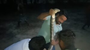 कोरबा NOW HINDUSTAN छत्तीसगढ़ राज्य का कोरबा जिला वन्य जीवों एवम विभिन्न सारी सरीसृप के लिए जाना जाता हैं, कोरबा जहां हाथियों का घर हैं वहीं दुनियां में अपनी एक अलग पहचान और आक्रामकता से जानें वाले सरीसृप का गड़ भी हैं, हम बात कर रहे दुनियां का विषैले सांपो में सब से लंबा विषधर किंग कोबरा की जिसको स्थानी भाषा में पहाड़ चित्ती के नाम से जाना जाता हैं, यह साप केवल मध्य भारत में छत्तीसगढ़ के कोरबा जिले में मिलना अपने आप में दुर्लभ और चर्चा का विषय हैं यहां आए किंग कोबरा के मिलने की जानकारी मिलते रहती हैं कुछ दिन पूर्व ही 11 फिट लम्बा किंग कोबरा मिला था उसको कुछ हफ़्ते हुए भी नहीं की कल शाम पसरखेत में फिर एक किंग कोबरा दिखने पर गांव वालों का हुजूम उमड़ा गया और देखते ही देखते पूरा गांव इक्कठा हो गया, भीड़ को देखते ही किंग कोबरा पास के एक आम पेड़ पर चढ़ गया, जिसके बाद गांव वालों ने इसकी जानकारी वन विभाग के बीट गार्ड नरेश यादव को दिया, जिसके बाद इसकी जानकारी वाइल्डलाइफ रेस्क्यू टीम अध्यक्ष वन विभाग सदस्य जितेन्द्र सारथी को दिया गया फिर कुछ घण्टे बाद जितेन्द्र सारथी अपने टीम के सदस्य देवा आशीष राय के साथ मौके स्थल पर पहुंचे और जितेन्द्र सारथी ने इसकी जानकारी कोरबा डीएफओ अरविंद पी एम को दिया, डीएफओ के निर्देष के पश्चात रेस्क्यू चालू किया गया फिर पहले पुरी भीड़ को दूर किया, पर भीड़ अधिक होने की वजह से किंग कोबरा निचे नहीं आने की बजाए और ऊपर चड़ गया, आखीरकार भीड़ हटने की वजह से कई घंटो बाद किंग कोबरा निचे आया जिसको देखते ही लोगों में भगदड़ मच गया, ज़मीन में आते ही लोगों के तरफ बढ़ते ही लोग डर से यहां वहां भागने लगे और फीर आधे घण्टे के मशक्कत के बाद वन विभाग के मौजूदगी में लगभग 14 फीट लम्बे किंग कोबरा को रेस्क्यू किया गया, उसको रेस्क्यू कर सुरक्षित बोरे में बड़ी सावधानी से रखा गया तब जाकर सभी ने राहत भरी सास ली, कुछ गांव वालों की उपस्तिथि में वही के जंगल में पंचनामा के पश्चात छोड़ा दिया गया।