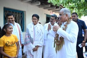 कोरबा, NOW HINDUSTAN 22 मई 2023 प्रदेश सरकार के मुखिया भूपेश बघेल अपने प्रदेशव्यापी भेंट-मुलाकात अभियान के तहत सोमवार को कोरबा जिले के रामपुर विधानसभा अंतर्गत ग्राम चिर्रा पहुंचे। मुख्यमंत्री ग्राम चिर्रा में अपने भेंट मुलाकात कार्यक्रम के बाद किसान सुभाष चंद राठिया के आतिथ्य में भोजन के लिए पहुंचे।
