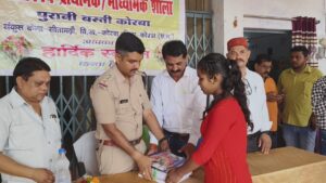 गुरूवार को पुरानी बस्ती कोरबा में स्तिथ शासकीय पूर्व माध्यमिक विद्यालय प्रांगण में आयोजित कार्यक्रम में नगर पालिक निगम कोरबा आयुक्त प्रभाकर पांडे ने उपस्थिति दर्ज़ कराई जहा पुष्प गुच्छ एवं फलदार पौधे भेंट कर उनका स्वागत अभिनंदन किया गया, सिविल लाइन थाना प्रभारी नितिन उपाध्याय द्वारा छत्तीसगढ़ महतारी एवं सरस्वती माता के तैल चित्र में दीप प्रज्वलित कर कार्यक्रम का शुभारंभ किया गया, वही छात्रों ने नृत्य की मनमोहक प्रस्तुति दी, तत्पश्चात थाना प्रभारी उपाध्याय ने नवप्रवेशित बच्चों को गड़वेश एवं पुस्तकों का वितरण किया।
