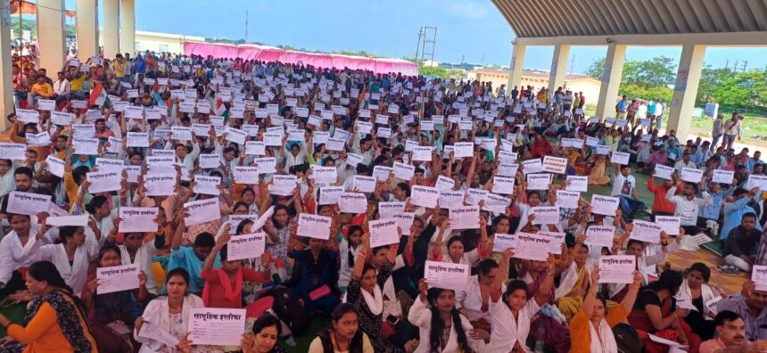 कोरबा/रायपुर 13 जुलाई 2023 NOW HINDUSTAN संविदा कर्मचारियों ने एस्मा लगाए जाने से धरना स्थल पर आज सामूहिक त्यागपत्र देने की चेतावनी दी। इन्होंने कहा कि सरकार उनके हड़ताल को दमनपूर्वक तोड़ने हथकंडे अपना रही है। वहीं आज धरना स्थल पर आकर भारतीय जनता पार्टी के नेताओ ने संविदा कर्मचारी को अपना समर्थन दिया। पूर्व मुख्यमंत्री डा रमन सिंह, ओ पी चौधरी और प्रवक्ता गौरी शंकर श्रीवास ने आकर स्वास्थ कर्मचारियों पर एस्मा लगाए जाने का विरोध किया।