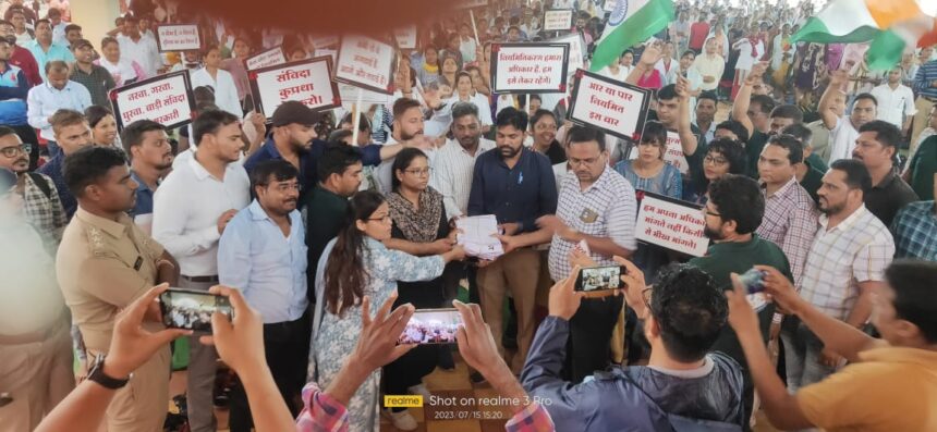 कोरबा/रायपुर 15 जुलाई 2023 NOW HINDUSTAN संविदा कर्मचारियों का हड़ताल 14 वे दिन भी जारी है। स्वास्थ विभाग के कर्मचारियों पर एस्मा लगाए जाने के विरोध में धरना स्थल पर तहसीलदार को सामूहिक त्याग पत्र सौंपा गया । कर्मचारी अपने मांगो के संबंध में अब सोसल मीडिया का सहारा ले रहे हैं। # संविदा मुक्त छत्तीसगढ़ के नाम से ट्वीट एवम सोसल मीडिया में फोटो वीडियो अपलोड किए जा रहे हैं। ताकि अधिक से अधिक लोगो तक अपनी जायज मांग को पहुंचाना चाह रहे हैं।