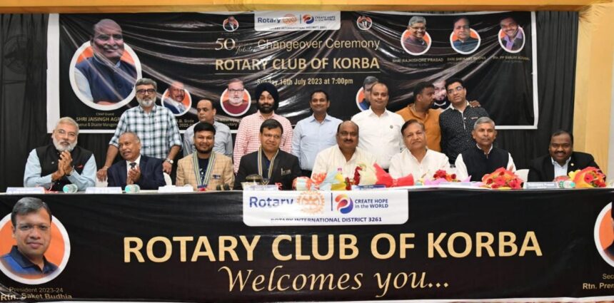 कोरबा NOW HINDUSTAN रोटरी क्लब के पदस्थापना दिवस के कार्यक्रम में मुख्य अतिथि के रूप में छत्तीसगढ़ प्रदेश के ऊर्जावान माननीय मंत्री जयसिंह अग्रवाल जी एवं विशिष्ट अतिथि कोरबा नगर निगम के महापौर राजकिशोर प्रसाद एवं अग्रवाल सभा के अध्यक्ष श्रीकांत बुधिया, रोटरी इंटरनेशनल डिस्ट्रिक्ट 3261 की असिस्टेंट गवर्नर रोटे संजय अग्रवाल के गरिमामई उपस्थिति में संपन्न हुआ। कार्यक्रम के शुभारंभ अथितियों का स्वागत पुष्पगुच्छ द्वारा किया गया। इसके पश्चात निवर्तमान अध्यक्ष डॉ बोडे द्वारा स्वागत भाषण दिया। निवर्तमान अध्यक्ष ने अपने कार्यकाल में किए गए उत्कृष्ट कार्य हेतु सभी सदस्यों को धन्यवाद के साथ किये गये कार्यो की सहराना की, इसके पश्चात अपना पदभार वर्तमान अध्यक्ष साकेत बुधिया जी को प्रदान किया। अध्यक्ष साकेत बुधिया ने अपनी नई कार्यकारिणी टीम का गठन किया और उनका परिचय दिया जिसमें सचिव के रूप में प्रेम प्रकाश गुप्ता,उपाध्यक्ष मुकेश जैन,संजय अग्रवाल(गुड़ु) कोषाध्यक्ष किशोर अग्रवाल,सह सचिव शैलेश अग्रवाल, सार्जेंट एट आर्म्स दीपक अग्रवाल के अलावा डायरेक्टर संजय बुधिया, पारस जैन, विक्रम अग्रवाल,सतनाम मल्होत्रा,भूमिका अग्रवाल,मनीष अग्रवाल है।साथ ही 7 नए सदस्य रिशु अग्रवाल,प्रकाश अग्रवाल, महावीर जैन,रितेश भूटानी,बलवीर सिंग भुल्लर, जयकिशन सोनी ऒर मुकेश अग्रवाल परिचय दिया,