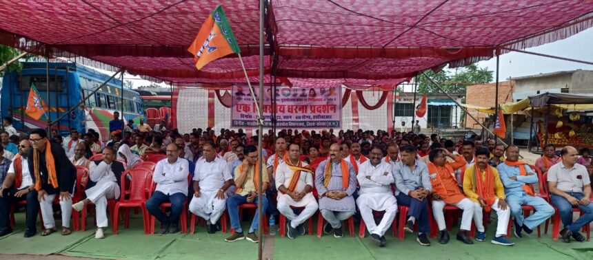 Korba NOW HINDUSTAN गुरुवार को कटघोरा विधानसभा क्षेत्र के अंतर्गत हरदी बाजार में कांग्रेस सरकार के कुशासन एवं कटघोरा विधायक पुरूषोत्तम कंवर के निष्क्रियता के खिलाफ भाजपा का एक दिवसीय विशाल धरना प्रदर्शन संपन्न हुआ । भारतीय जनता पार्टी कटघोरा विधानसभा के द्वारा जो धरना प्रदर्शन किया गया वह इन प्रमुख नौ सूत्रीय जन समस्याएं जिन पर स्थानीय विधायक निष्क्रिय हैं विषय पर स्थानीय विधायक एवं कांग्रेस शासन को जागृत करने के लिए किया गया है ।