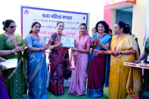 इसी कड़ी में साकार महिला सिलाई प्रशिक्षण केन्द्र से प्रशिक्षित ग्राम खोडरी की 14 महिलाओं को श्रीमती पूनम मिश्रा द्वारा प्रमाण पत्र का वितरण किया गया तथा प्रमाण पत्र प्राप्त महिलाओं द्वारा तैयार किये गये वस्त्रों का अवलोकन करते हुए उनकी भूरि-भूरि प्रशंसा की और उनके उज्ज्वल भविष्य की कामना की तथा स्वरोजगार हेतु प्रोत्साहित किया।