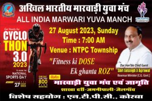 कोरबा NOW HINDUSTAN छत्तीसगढ़ प्रांतीय मारवाड़ी युवा मंच के द्वारा सभी जिलों में साइक्लोथों 3.0 फिटनेस की डोज 1 घंटे रोज का आयोजन 27 अगस्त रविवार को किया जा रहा है।
