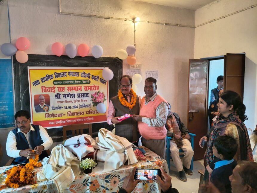 NOW HINDUSTAN. Korba.Bihar. राजापाकर /वैशाली अंतर्गत नवसृजित प्राथमिक विद्यालय गंगाजल दक्षिणी काली स्थान के पूर्व प्रभारी प्रधानाध्यापक गणेश प्रसाद का विदाई सह सम्मान समारोह का आयोजन किया गया. जिसकी अध्यक्षता…