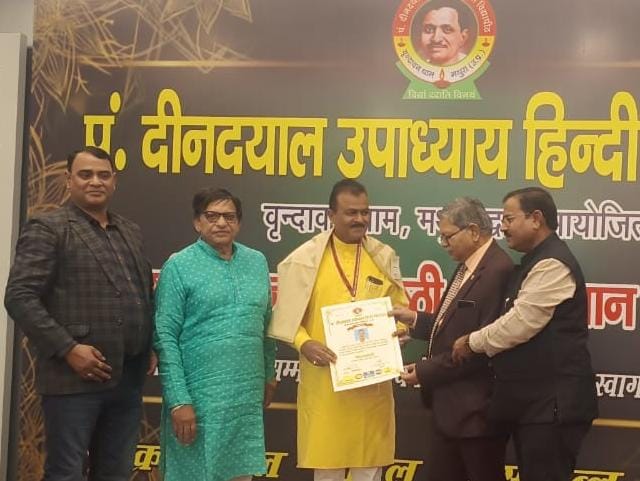 पं. दीनदयाल उपाध्याय हिंदी विद्यापीठ, मथुरा द्वारा “विद्या वाचस्पति (डॉक्टरेट मानद उपाधि)” सारस्वत सम्मान समारोह का भव्य आयोजन……