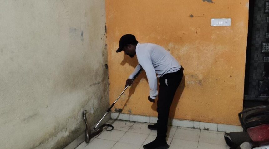 मुड़ापार पीएम आवास में नाग घुसा, जितेंद्र सारथी की टीम ने किया सफल रेस्क्यू…….