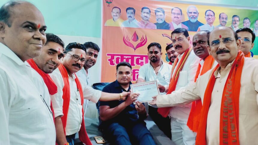 NOW HINDUSTAN. Korba. सेवा पखवाड़ा के अंतर्गत हरदीबाजार में आयोजित विधानसभा स्तरीय विशाल रक्तदान शिविर में शामिल हुये भाजपा जिलाध्यक्ष गोपाल मोदी और कटघोरा विधायक प्रेमचंद पटेल। देश के यशस्वी…