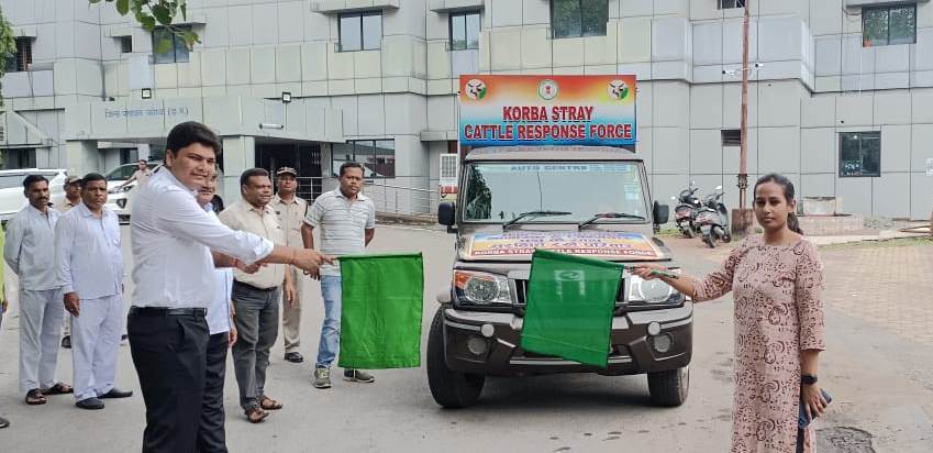 कोरबा NOW HINDUSTAN. 05 सितंबर 2023/जिला पंचायत परिसर में मंगलवार को मुख्य कार्यपालन अधिकारी जिला पंचायत विश्वदीप एवं नगर निगम आयुक्त सुश्री प्रतिष्ठा ममगाई ने हरी झण्डी दिखाकर ‘स्ट्रे कैटल…