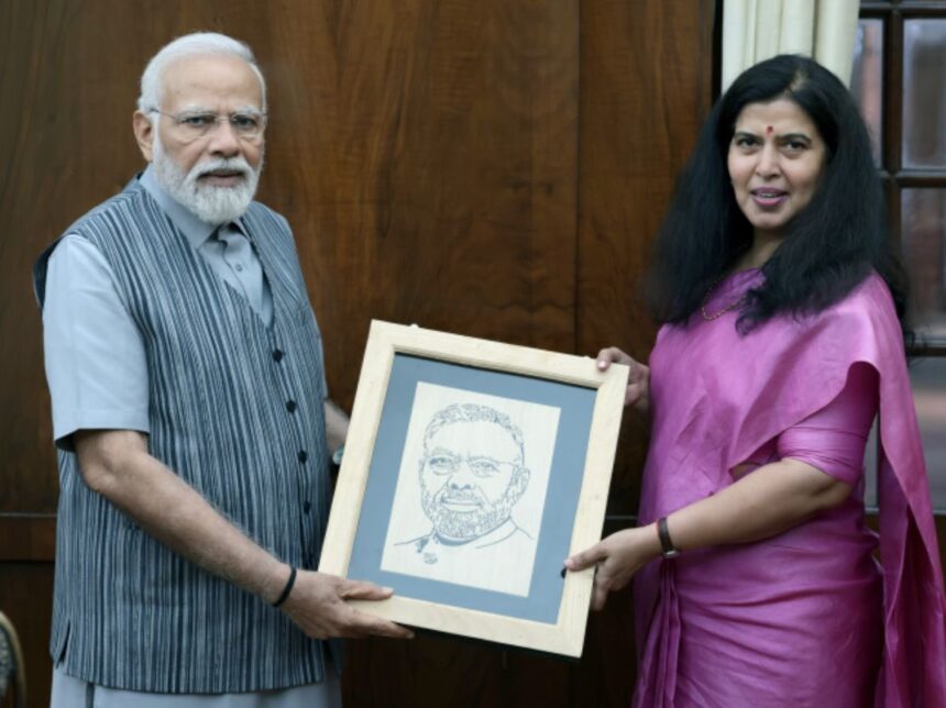 भाजपा राष्ट्रीय उपाध्यक्ष बनने के बाद सरोज पांडे ने प्रधानमंत्री नरेंद्र मोदी से की मुलाकात, दंतेवाड़ा की उर्मिला तामो द्वारा बनाई चित्र किया भेट…